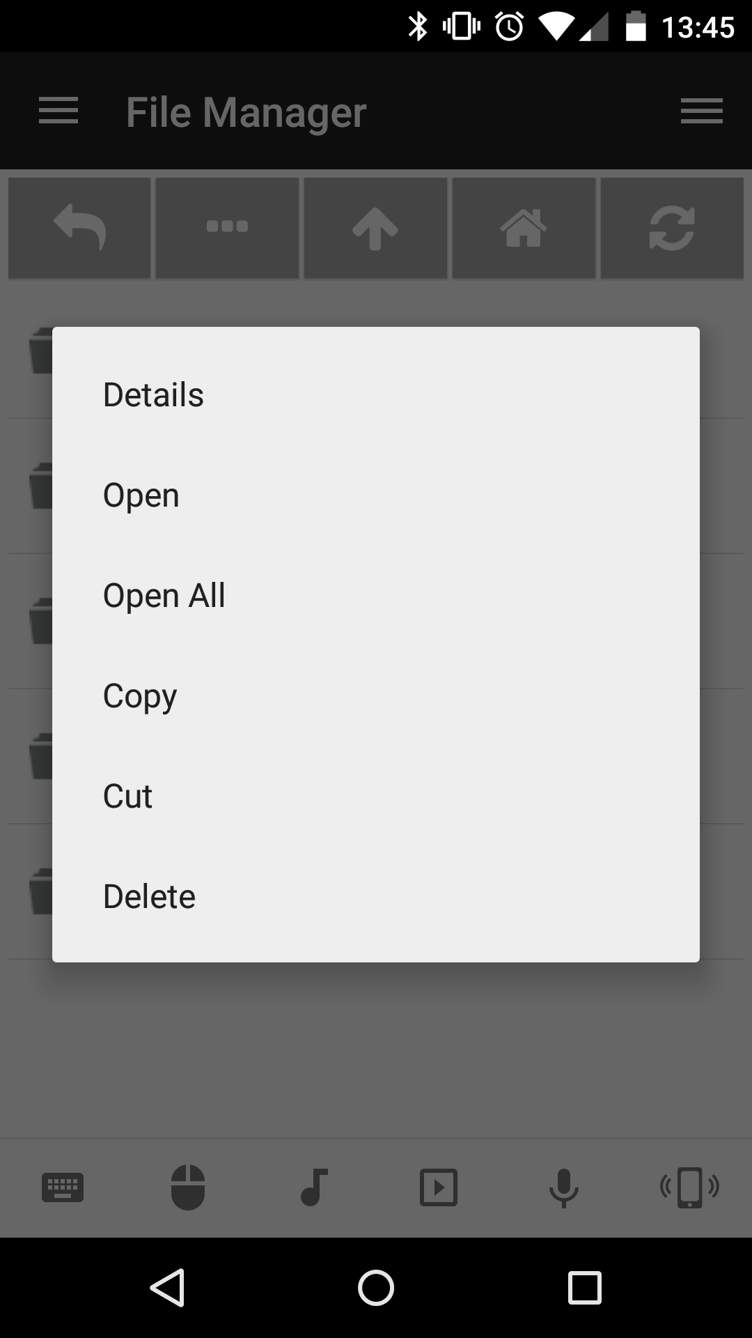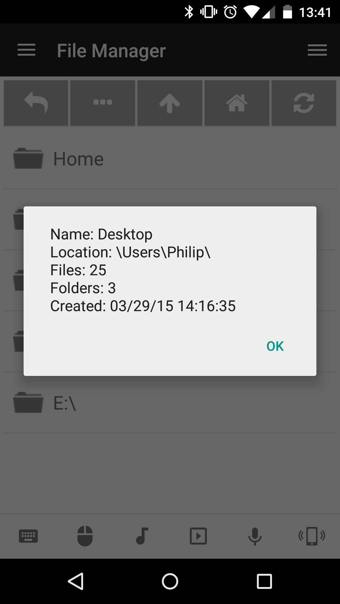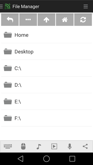 The remote file manager makes it possible to easily browse and open files on your computer. This is especially useful for opening media files (music, videos, etc) or even starting programs. However, for starting programs the Start (Windows), Launcher (Linux) and Launcher (Mac) are recommended instead.
