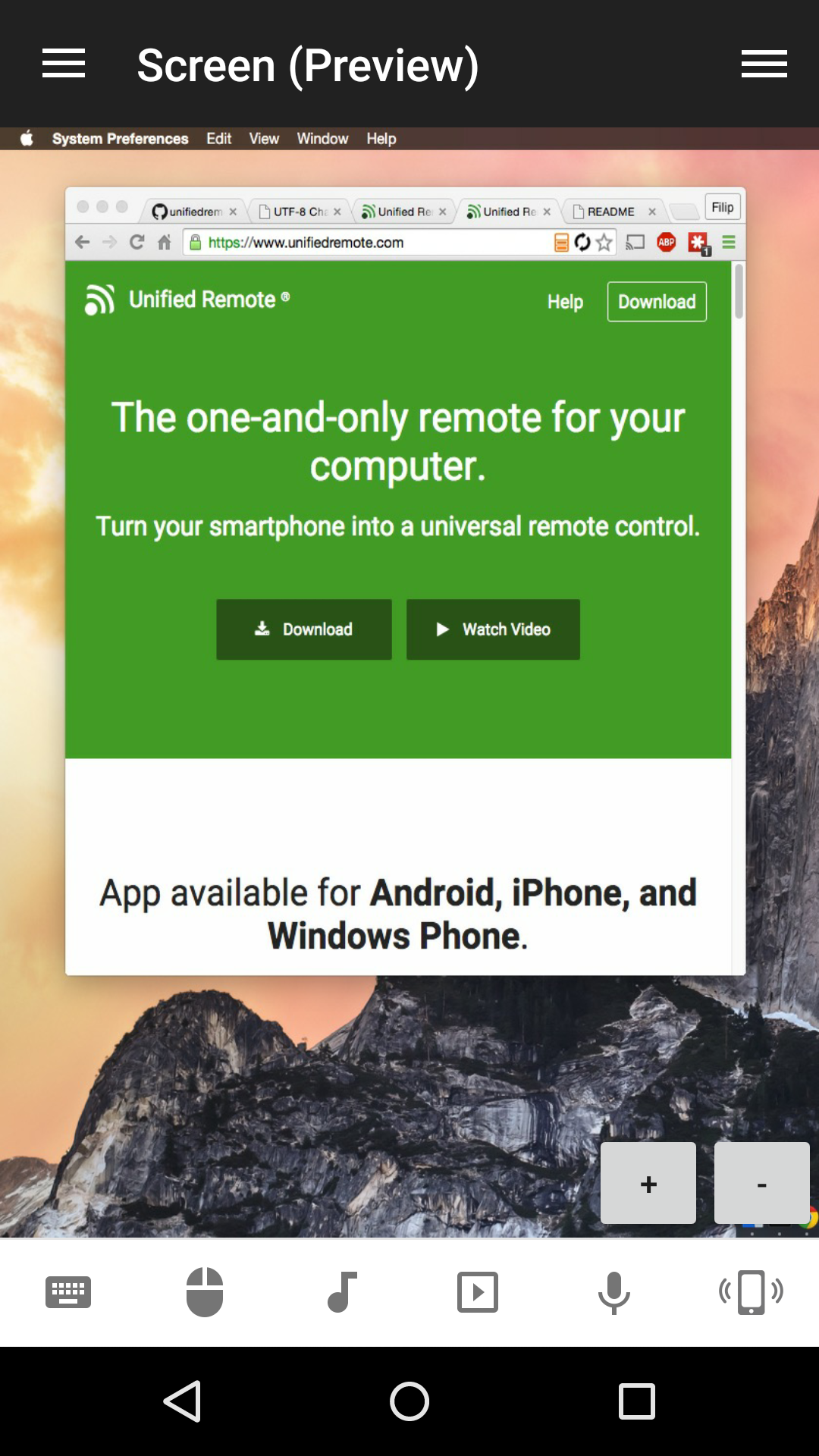 This remote lets you view your computer display from your phone (like Remote Desktop / VNC). You can also move the cursor and click on the screen to interact with programs. This is very useful for when you're not in the same room as your computer.