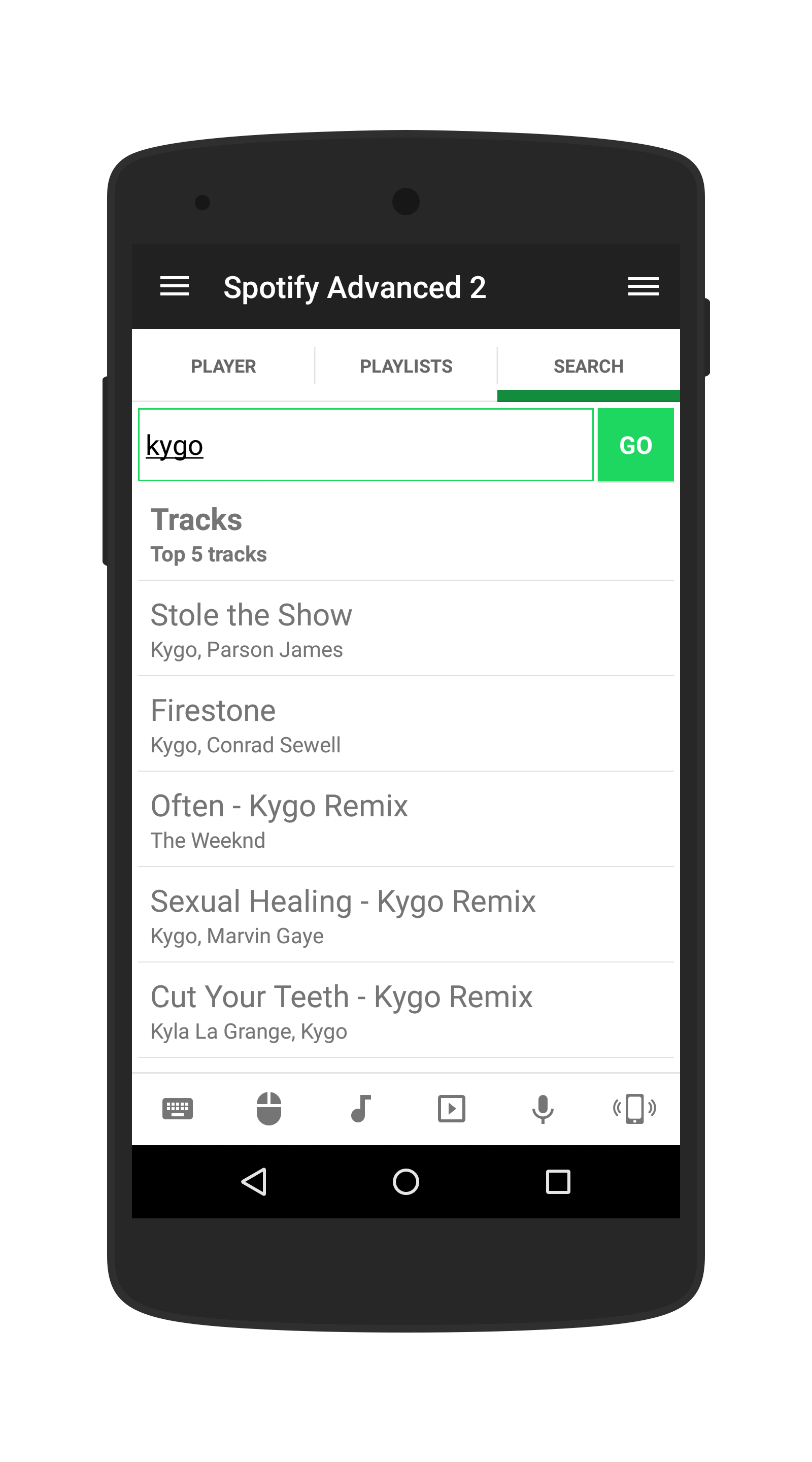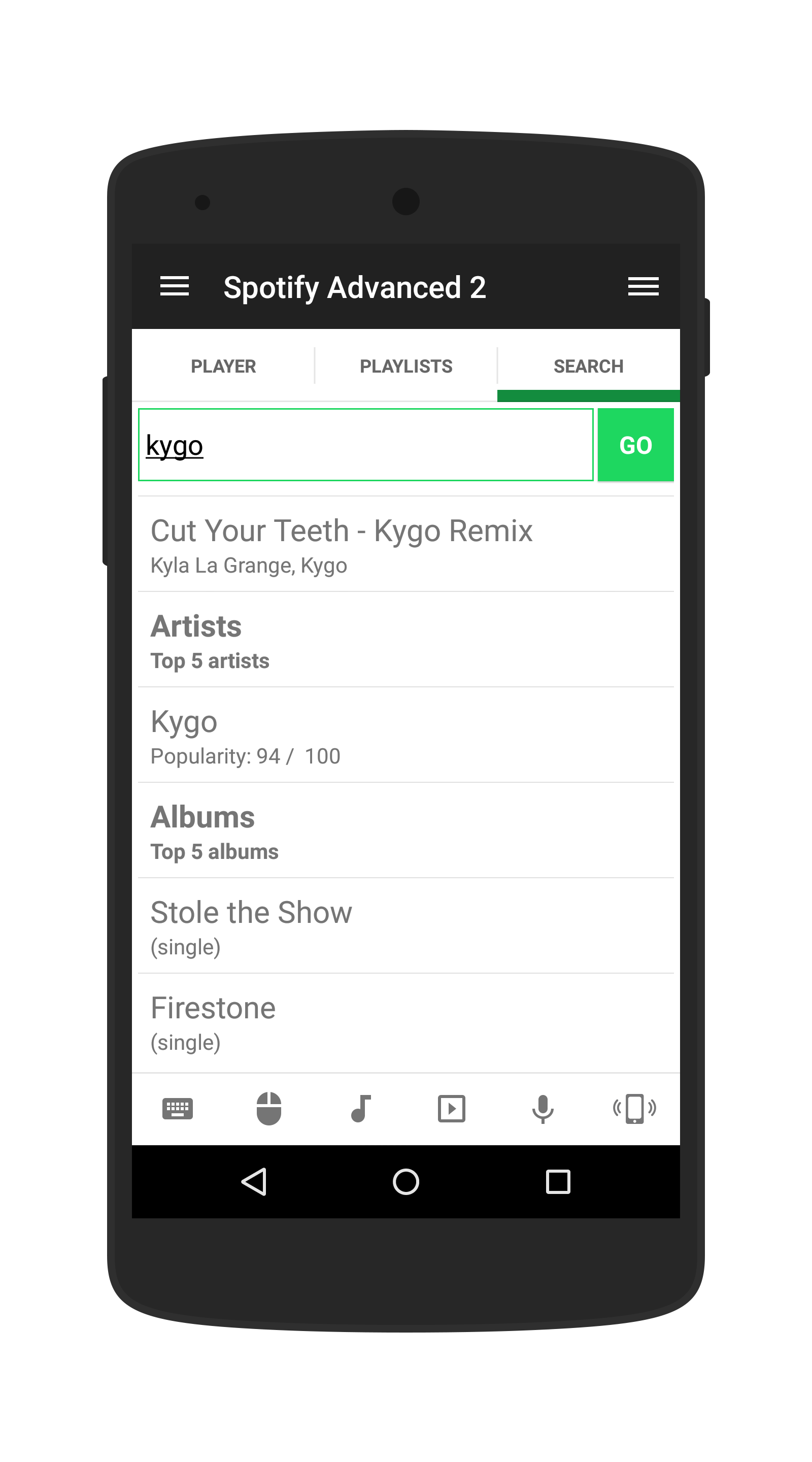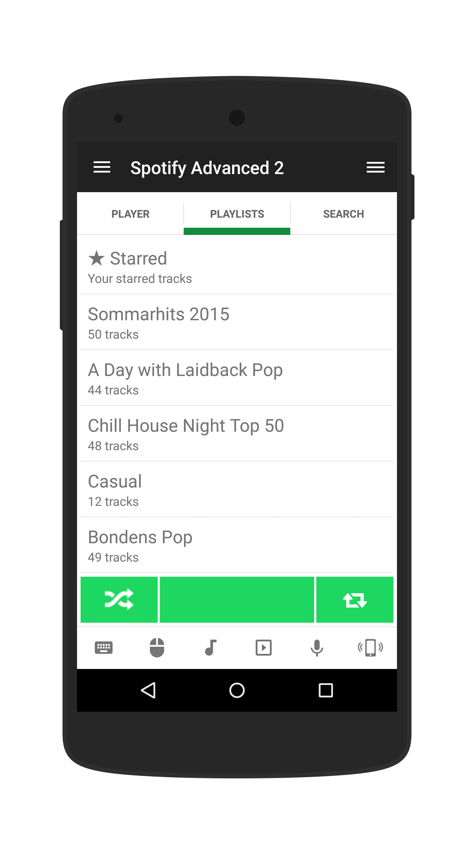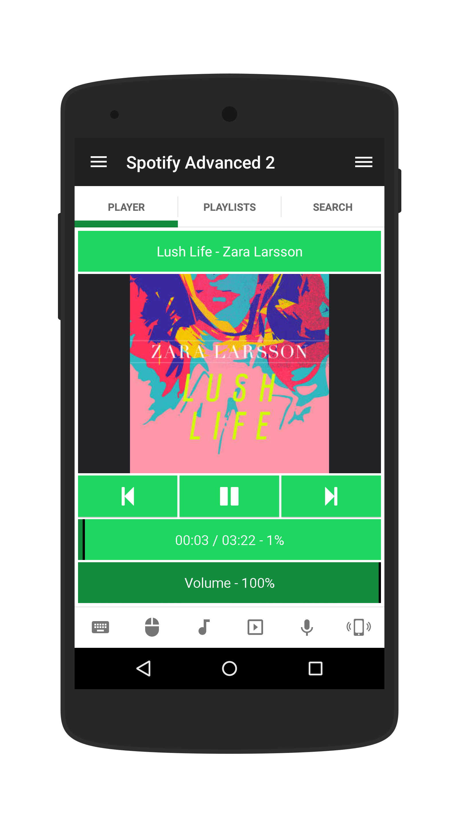This version of the Spotify remote includes advanced features such as playlists and search.